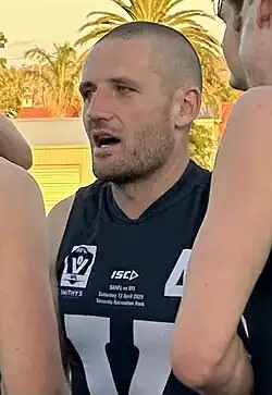 He would only play four games in the 2023 season, all as a substitute. However, he captained the club's VFL side to their first premiership, although he missed the Grand Final due to a one week ban for striking in the preliminary final.[7][8] He was unable to add to his AFL games tally in the 2024 under new coach Damien Hardwick, and was delisted at the end of the season following the VFL team's wildcard round exit to Frankston.[9][10] He remains on the Gold Coast, captaining the Suns’ VFL side for the 2025 season, along with being a specialist coach at the club.