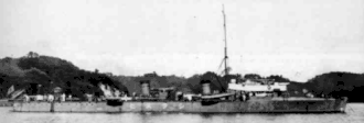 During the Battle of Tsushima, Shiranui served as flagship of the 5th Destroyer Division.[4] She participated in a large Japanese torpedo attack against the Imperial Russian Navy squadron on the evening of 27 May 1905, during which one of her boilers was knocked out.[5] On the morning of 28 May, she happened upon the badly damaged Russian armored cruiser Admiral Nakhimov off Tsushima as Admiral Nakhimov′s crew was preparing to blow her up and scuttle her.[6] Shiranui fired a challenging shot, to which the men who had abandoned ship in Admiral Nakhimov′s boats responded with surrender flags.[6] Shiranui′s crew demanded that Admiral Nakhimov surrender and warned that they would give the Russians in the boats no quarter if any attempt was made to sink the cruiser to prevent her capture.[6] Meanwhile, the Japanese auxiliary cruiser Sado Maru arrived on the scene, and crewmen from Shiranui and Sado Maru went aboard Admiral Nakhimov to take possession of her, but found her too heavily damaged to save,[6] and Admiral Nakhimov later sank.[7]