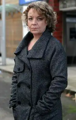 Marsden first appeared on 5 March 2001 in the "Who Shot Phil?" storyline.[2] In the whodunit storyline the five main suspects were Dan Sullivan, Steve Owen, Lisa Shaw, Ian Beale and Mark Fowler.[12][13] A source in the Daily Record said, "Sooner or later the truth will out. But until then there's going to be a lot of probing going on."[4] She left on 27 March 2001[14] after unsuccessfully identifying the shooter (who turned out to be Lisa).[15] In 2002 she appeared in January,[16] April[17] and from 14 November to 6 December.[18][19] In November, when Marsden returns, the police suspect that Phil has murdered his ex-wife Lisa. The Daily Mirror said, "They are the words Phil Mitchell has heard many times before. 'You're nicked', baldy. Intrepid DCI Marsden may not be a Jane Tennison, but she's nabbed her prime suspect. "I've got some good news for you, Phil," she says, after arresting him on suspicion of murder. "The police in Portugal found your jacket. Unfortunately for you, it's covered in blood. Mrs Fowler's blood..."[20] In 2003, Marsden returned in March[21] July,[22] August,[23] November[24] and for a longer stint in December.[25]