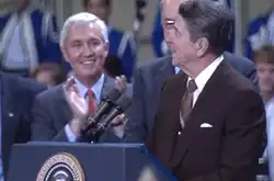 In September 2011, Gardner endorsed the (ultimately unsuccessful) 2012 candidacy of Wake County Commissioner Tony Gurley for lieutenant governor.[13] As an "elder politician," Gardner has been called one of the "Four Jims" of the North Carolina Republican establishment, the others being former Governors Holshouser and Martin and former United States House of Representatives member Jim Broyhill (Holshouser and Broyhill have since died).[14] In January 2013, Gardner served as master of ceremonies at the inauguration ceremony for newly elected Gov. Pat McCrory, Lt. Gov. Dan Forest and other members of the North Carolina Council of State.[15] The ceremony celebrated the return of Republicans to the governor's office for the first time since Gardner's defeat in 1992. Forest also became the first Republican Lieutenant Governor since Gardner (Democrats Dennis A. Wicker, Bev Perdue, and Walter H. Dalton served in the post after Gardner).