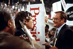 During his tenure, Thompson was mentioned as a potential future candidate for president or vice president. In 1978, The Washington Post declared that "during his first year of elective office, Gov. James R. Thompson has passed one test of a viable presidential candidate to oppose Jimmy Carter" in 1980.[17] Thompson did not run for president, but was reportedly considered as a running mate for Republican nominee Ronald Reagan.[18] For several years, Thompson considered the possibility of making a run for the Republican presidential nomination in 1988.[19][20] A Chicago Tribune report in 1988 concluded that Thompson had been very interested in serving as president, but felt that it was too soon for him to run in 1980 and unviable to run against incumbent vice president George H. W. Bush in 1988. He was approached for interest on the Bush ticket in 1988 but asked to be not considered, stating he had concern about "the effect of the campaign on his family."[20][21]