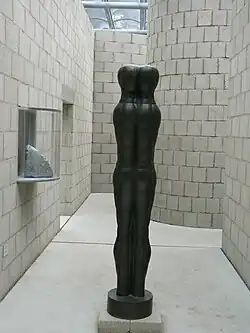 In 1963 Avramidis made a sculpture entitled "Saülen" (Columns) for the first time. Another version from 1963, "Modell für eine Säule II" (Model for a Column II)[30] shows the principle of stacking a single Figur or a Figurengruppe with the same, but inverted, Figur or Figurengruppe, thus creating a mirrored columnar effect which could then be replicated endlessly.[31] This process would ultimately be leading Avramidis to conceive his magnum opus, the "Humanitas-Saüle" (Column of Humanity),[1] during the 1990s, work that is clearly influenced by Constantin Brâncuși's Endless Column.