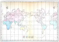The oldest biogeographical map. Wagner indicated the northern, the equatorial, the Australian and the Magellan provinces (southern South America)