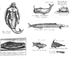 Richter's Ichthyotheologie drew from several other works in natural theology. He noted Johann Christian Benemann (1683-1744) and his Blumengedanken oder Blumentheologie (flower thoughts or flower theology) as well as Johann Heinrich Zorn's Petinotheologie as books that he had examined. The book had four parts dealing with physico-theological structure. The first dealt with the origin, nature, and types of fish. The second on the uses. The third deals with divine intentions and thoughts in the Bible on fish. The fourth dealt with fantastic fish and how the duties of humans as decided by God can be deduced. He also included some natural history observations such as the fish compositions of various German rivers and the idea that pike eggs could be transported by ducks. He noted a mass death of fish caused by sulfur fumes entering the water following an earthquake.[3]
