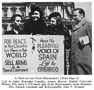 Minnesota Congressman John T. Bernard fought throughout his life for working people against strong opposition. His outspoken and uncompromising views led him, on his second day in office, to cast the single "no" vote in Congress against the Spanish arms embargo. Bernard's vote proved farsighted as the Spanish Civil War became, in many ways, a "dress rehearsal" for World War II.[3][8]