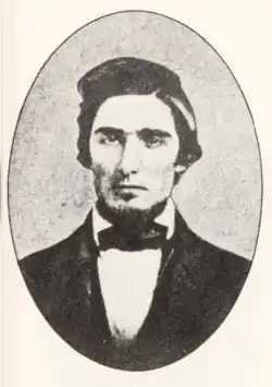 - John Edwin Cook, sometimes spelled Cooke, 29, born in Haddam, Connecticut,[72] but was from Pennsylvania.[13]: 24 He had been a teacher.[73] He was Brown's second in command, by one report,[74] had been with Brown in Kansas,[7]: 6 and had lived undercover for over a year in Harpers Ferry.[7]: 2 He was described as "a man of some intelligence",[74] "a quick-witted, intelligent man",[75] from a good family, who had studied law and taught school.[76][77] He escaped into Pennsylvania after the raid, but Governor Wise offered a reward of $1,000,[78] and he was soon captured.[79][80] His attorney at the time, Alexander McClure, published lengthy recollections.[81] A band played as he was taken from the jail in Chambersburg to the train that would take him to Charles Town for trial.[82]