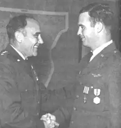 Presenting Distinguished Flying Cross to his son, Captain Michael E. Ryan (right), 1969.