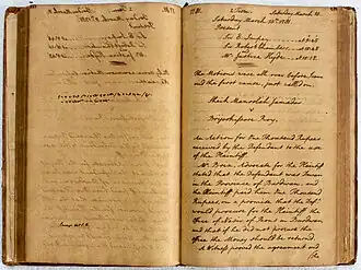 Approximately 40 pages of the notebooks are written in shorthand, which Hyde used to conceal thoughts and record his fellow judges accepting bribes.[4] Hyde used James Weston's shorthand system "Stenography compleated".[6] Weston's shorthand system was first published in 1727.[7]