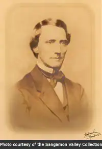 Jacob Bunn and John Whitfield Bunn, along with many of their colleagues and friends, such as Stephen Trigg Logan, John Williams, and Ozias M. Hatch, became close friends of Abraham Lincoln, and assisted Lincoln in various ways in his 1860 presidential campaign.[13] As a part of his 1860 presidential campaign strategy Lincoln acquired, in May, 1859, the Illinois Staats-Anzeiger, a German-language newspaper of Springfield, Illinois, to further the cause of Republican Party politics among the German-speaking community of the region.[14] Lincoln acquired the Illinois Staats-Anzeiger through his banker Jacob Bunn,[14] who was a close personal friend and client of Lincoln.[15] Jacob Bunn and his brother John Whitfield Bunn were close personal friends of Lincoln and his family,[16] and were industrialists and financiers who established a national and international network of industrial corporations ranging from Chicago railroads and banks to manufacturing corporations of global scale in production and economic impact.[17] John Whitfield Bunn served as the treasurer of, and as one of the initial financial contributors to, the $5,000 1860 presidential campaign fund for Lincoln whose establishment and formation had been originally suggested to John W. Bunn by Judge Stephen Trigg Logan, a former law partner of Lincoln.[18] Jacob Bunn, John Williams, Ozias M. Hatch, Thomas Condell, and Robert Irwin were also among the initial financial contributors to the campaign fund.[18]