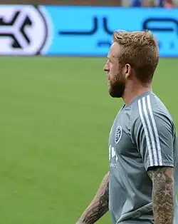 On 31 January 2018, Russell signed with Major League Soccer club Sporting Kansas City on a three-year contract.[20] He made his debut for Sporting in the opening game of their 2018 MLS season, a 2–0 defeat against New York City FC on 4 March. Russell's solo goal against Los Angeles Galaxy earned him MLS Goal of the Week.[21] Russell scored a hat-trick for Sporting KC in a 6–0 win against Vancouver Whitecaps FC on 20 April,[22] earning him the MLS Player of the week award.