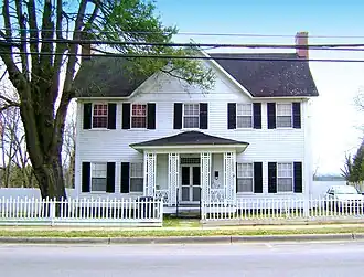 Johnson-Hubbard House is a historic home located at Wilkesboro, Wilkes County, North Carolina. It was built between about 1855 and 1857, and is a two-story, five-bay, vernacular Greek Revival style frame dwelling with a one-story rear ell. It features brick end chimneys with single paved shoulders and stuccoed surfaces penciled to resemble cut stone.[2]