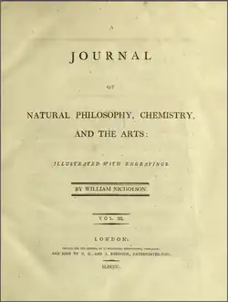 A Journal of Natural Philosophy, Chemistry, and the Arts, generally known as Nicholson's Journal, was the first monthly scientific journal in Great Britain. William Nicholson began it in 1797[1] and was the editor until it merged with another journal in January 1814.[2]