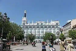 Both Sáenz-Díez[2] and Garcia families originated from the comarca of Cameros in the Logroño province. Juan's paternal grandfather, Pedro Sáenz-Díez Ibarra, was related to petty textile manufacturing in Torecilla de Cameros.[3] His son and Juan's father, Acisclo Sáenz-Díez de la Riva (1867-1905),[4] was also born in Cameros.[5] As a youngster he left his native town and moved to Galicia, not an unlikely decision as there was a notable influx of migrants from Logroño to Galicia at the time.[6] He settled in Santiago, assisting relatives in family business and becoming a successful entrepreneur.[7] At unspecified data he married Isabel García Blanco (1873–1956), daughter of a trade tycoon Simeón García de Olalla y de la Riva (1823–1889).[8] Also a Riojano from Cameros and also a migrant to Galicia, back in the 1850s[9] he launched a trading company dealing in textiles.[10] By the late 1880s he was already operating a number of companies which grew to major business; active in all of Northern Spain from Galicia to Catalonia, they gave rise to a family fortune.[11] Acisclo and Isabel settled in Santiago; it is not clear how many children the couple had.[12]