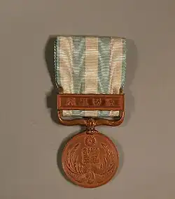Military Medal of Honor (従軍記章, jūgun kishō) was a military decoration for meritorious service to the Empire of Japan, formerly awarded to all military personnel who participated in battles in a war. These war medals and accompanying certificates specifically identify the conflict for which the decoration will have been awarded.