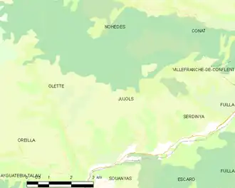 Jujols is located in the canton of Les Pyrénées catalanes and in the arrondissement of Prades.