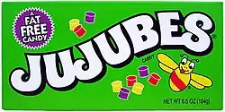 Jujube (/ˈdʒuːdʒuːb/ or /ˈdʒuːdʒuːbiː/; also known as jube, jubejube or juju) is a gummy type of candy drop.