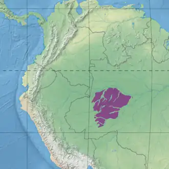 The Juruá–Purus moist forests ecoregion is in the state of Amazonas in northwest Brazil to the south of the Solimões, or upper Amazon River. It has an area of 24,268,188 hectares (59,968,000 acres).[1] The ecoregion is bounded to the north, east and south by stretches of the Purus várzea ecoregion along the Solimões and Purus rivers.[2] The ecoregion contains the Juruá River, which has typical flora and fauna. Urban centers include Carauari, Tefé, Coari and Jutaí.[3]