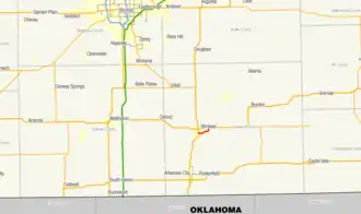 Winfield0.0000.000 US-77 – Hackney, Arkansas City, DouglassWestern terminus