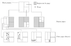 - Region pages: A collection of (region, child) pairs containing a description of the bounding region along with a pointer to the child page corresponding to that region.