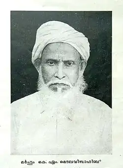 Kaathib Thayyil Mohammed Kutty Musliyar, popularly known as K. M. Moulavi or K. M. Maulavi, was an Indian religious Leader. He was a leader of the Muslim League[1] and Islahi Movement from Malabar district. He was a religious scholar who promoted modern education, the Malayalam language, and Muslim women's education. He worked to uplift the Mappila community after the Malabar rebellion.[2][3][4]