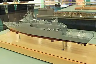 In the 1990s, the Royal Malaysian Navy identified the need to replace their ageing patrol boats. These 31 m long vessels built by Vosper Ltd with a displacement of 96 tons had been in service since the 1960s.[1] After receiving government approval, the Malaysian Navy ran a competition for the design in 1996, planning to purchase 27 vessels over 15 years. The specifications aimed for a design with a displacement of 1,300 tons and an overall length of 80 m. It was already noted at that time that this resembled full-fledged corvettes rather than patrol vessels, but the eventual winning bid would turn out to be even larger.[2] The Australian bid proposed a Joint Patrol Vessel, to be designed by Australian Transfield Shipbuilding and subsequently purchased by the Malaysian Navy as well as the Royal Australian Navy.[3] Other contenders were the German Naval Group consortium as well as British shipyards Vosper Thornycroft and Yarrow Shipbuilders.