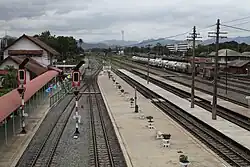 Kaeng Khoi Junction railway station is a railway station located in Kaeng Khoi Subdistrict, Kaeng Khoi district, Saraburi province. It is a class 1 railway station located 125.106 km (77.7 mi) from Bangkok railway station. It opened on May 1, 1897 as part of the Northeastern Line Ayutthaya–Kaeng Khoi Junction section. In 1956, the station became a junction when a line branched off to Suranarai Station. Then in 1995, another line from Khlong Sip Kao Junction for freight trains only linked to the Northeastern Mainline.