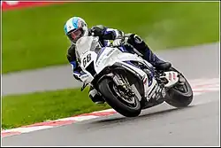 For 2008 he moved to Rob Mac Racing, riding a factory Yamaha. He crashed in the first round after being struck by Tom Sykes' fallen Rizla Suzuki.[3] He did not finish any of the first six races of the year, leading him to largely give up on the season.[4] At the final meeting of the season he was quick in practice, before being forced to pull out.[5] He made a one-off appearance on a works Yamaha in the World Supersport championship at Brands Hatch,[6] crashing out of 5th place.