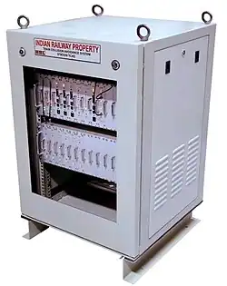 The Vital Computer is the heart of stationary KAVACH units. It consists of a number of electronic modules with software that performs all the tasks. It receives information from signalling and interlocking systems and generates messages that are relayed to the locomotive by the Radio Unit in real-time.