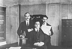From left: Reza Tarbiat, Hassan Taghizadeh, and Mohammad Ali Jamalzadeh in the editorial office of Kaveh magazine.