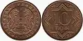 | 10 tiyin | 19.56 mm | 3.48 g | 1.6 mm | ||||||