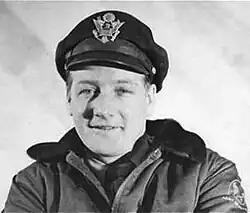 He was shot down three times. The first time, he bailed out near Paris and was sheltered by the French Resistance.[2] Disguised as a woman,[1] he rode a bicycle to Allied lines 40 miles (64 km) away.[2]