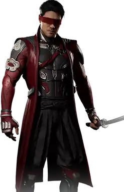 In Mortal Kombat 1 (2023), following changes to the timeline made by Fire God Liu Kang, Kenshi is a former yakuza member and descendant of the Taira clan who seeks to reclaim the clan's lost sword, Sento, to free them from the yakuza. In pursuit of his quest, Kenshi comes into conflict with actor Johnny Cage, who owns the sword as a memento. They are both recruited by Liu Kang to represent Earthrealm in the Mortal Kombat tournament.[26] After Raiden is chosen as Liu Kang's champion, Kenshi, Cage, and Kung Lao are tasked with capturing Shang Tsung. In the midst of this, they unknowingly botch Shang Tsung's efforts to treat Princess Mileena's Tarkat disease,[27] leading to her going on a rampage. Amidst this, Kenshi rescues Cage from her, but loses his eyes in the attack before Shang Tsung stops her.[28] In return, Cage eventually gives Sento back to Kenshi before the pair assist Liu Kang saving Earthrealm and Outworld from Shang Tsung.[29][30] Following this, Kenshi turns his attention back to reviving his clan and helping his cousin Takeda leave the yakuza as well.[31]