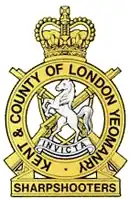 ![]() Cap badge of the Kent and Sharpshooters Yeomanry | |