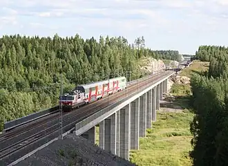 ![]() A loco-hauled Intercity train crossing the Luhdanmäki railway bridge, part of the Kerava–Lahti railway, in July 2010. | |