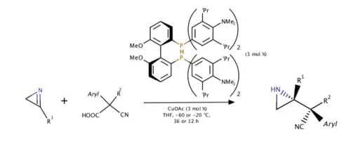 - ^ Zhang, Hai-Jun; Xie, Yan-Cheng; Yin, Liang (2019-04-12). "Copper(I)-catalyzed asymmetric decarboxylative Mannich reaction enabled by acidic activation of 2H-azirines". Nature Communications. 10 (1): 1699. Bibcode:2019NatCo..10.1699Z. doi:10.1038/s41467-019-09750-5. ISSN 2041-1723. PMC 6461707. PMID 30979892.