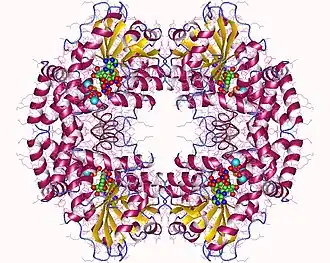 ![]() Ketol-acid reductoisomerase tetramer, Alicyclobacillus acidocaldarius | |||||||||
