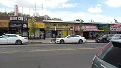 As of 2017, the median household income in Community Board 8 was $64,005.[39] In 2018, an estimated 22% of Kew Gardens Hills residents lived in poverty, compared to 19% in all of Queens and 20% in all of New York City. One in eleven residents (9%) were unemployed, compared to 8% in Queens and 9% in New York City. Rent burden, or the percentage of residents who have difficulty paying their rent, is 54% in Kew Gardens Hills, slightly higher than the boroughwide and citywide rates of 53% and 51% respectively. Based on this calculation, as of 2018, Kew Gardens Hills is considered to be high-income relative to the rest of the city and not gentrifying.[37]: 7  The neighborhood has been described as "a largely middle-class area".[40]