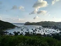 The provincial coastline spreads from Đại Lãnh Commune to the end of Cam Ranh Bay with 385 km (239 mi) of coastline featuring numerous creek mouths, lagoons, river mouths, and hundreds of islands and islets. The province also administers large territorial waters. The Spratly Islands are part of the province's Trường Sa District. The coastline is indented by several bays, most notably the four bays of Vân Phong Bay, Nha Phu Bay, Nha Trang Bay (Cù Huân) and Cam Ranh Bay, of which Cam Ranh Bay with an area of around 200 km2 (77 sq mi), encompassed by a mountain range, is regarded as one of the three best natural seaports in the world. Cam Ranh Bay is strategically important and has been used as a naval base by several major powers throughout history.