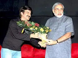 Jamnadas Majethia with Narendra Modi, at the screening of Khichdi: The Movie in 2010.
