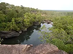 The vegetation is mostly savanna and open woodland, which vary in species composition with rainfall, underlying soils, and exposure to fires. Other vegetation types include wetlands and enclaves of monsoon rainforest.[2]