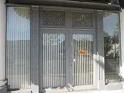 The main facade of the building features five arches supported by Corinthian columns and extensive plate glass windows displaying the showroom's interior, and the entrance includes cast iron piers and a transom with an iron grille. The McDaneld Motor Company, the Bush-Morgan Motor Company, and the Howard Motor Company all used the building as a dealership, and it was later used as a body shop.[2]