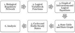 The first approach for qualitative modeling was based on extreme discretization since all genes could be either on (present) or off (absent).[2] This Boolean approach was generalized into a multi-valued approach i.e. Kinetic Logic,[5][6] in which logical identification of all steady states became possible.[7]
