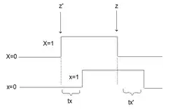 The temporal relation between a logical variable x which is associated with the level of an element and a logical function X which is associated with its evolution can be explained as follows.