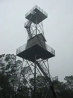 - The Fire lookout tower at 10°11′32″N 77°25′11″E / 10.19222°N 77.41972°E just past km 13, 8 km (5.0 mi) before Berijam lake, has a roofed hexagon structure not meant for overnight use but can offer short term safety from Gaur and elephants.