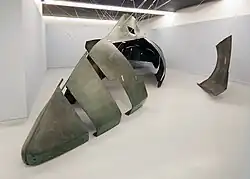Moby Dick realization 10 - Muzeum Sztuki - MS2. Lodz 2008. Installation, ship hull cut into 16 parts, steel ropes, sound.