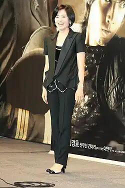 Kyeon remarried in 1998, to businessman Lee Hong-heon.[5] They have one son, Lee Ki-baek. Lee Hong-heon legally adopted Kyeon's two daughters from her first marriage, and they took on his surname; Lee Yu-bi and Lee Da-in are both actresses.[6][7] Kyeon is also a part of the Hwanggan Kyeon clan, which makes her a descendant of Kyŏn Hwŏn, who was the first king of the Hubaekje kingdom, during the Later Three Kingdoms of Korea.