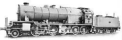 Owing to the length of the locomotive, the tender was kept to a short 6-wheeled pattern,[12] rather than the existing 8-wheeled designs of the 0-8-0 locomotives, so that the overall locomotive would still fit onto existing turntables. This was taller though, so its capacity was increased from 5 tons and 3,600 gallons[14] to 6 tons and 4,500 gallons.[10] Despite this increase, it was still described as looking like "an elephant harnessed to a hand-cart".[15]