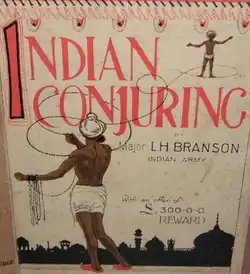 Branson had incorporated his magic skills into his military service.[3] His stage magician name was Lionel Cardac.[4] He was a member of The Magic Circle, and devoted a whole chapter to debunking the Indian rope trick in his book Indian Conjuring (1922).[5] He offered a large sum of money to anyone who could perform the Indian rope trick, nobody ever won the money.[6]
