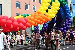 Belfast Pride is a significant LGBTQ event in Northern Ireland, growing from 50 participants singing gay anthems at its first parade or "dander" in 1991 to over 6,500 participants with 12 carnival floats in 2006.[157][158] An organiser noted that it had taken eight years since the decriminalisation of male homosexuality before such a march could be organised at all.[158] The pride parade was noted for its ability to at least temporarily unite historically divided communities - Unionist and Nationalist, Protestant and Catholic.[158] Overall, Belfast has little gay space.[159] In 2019, more than 50,000 participated in the Pride festivities in Belfast.[160]