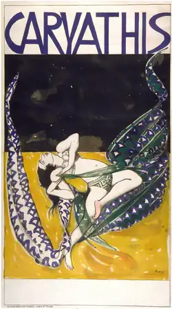 The June 14, 1921 premiere of Caryathis' one-woman show at the Colisée was well received. One critic noted of her work on La Belle, "It seems that what unfolds before our eyes is not ballet, but one of the nightmarish visions of Baudelaire or Edgar Allan Poe."[25] In July 1921 the program moved to Paul Poiret's fashionable garden theatre L'Oasis, where Satie made a single guest appearance conducting his music.[26] He had not led an orchestra since his early days at Le Chat Noir and appeared to be nervous; by the end of the performance, which lasted no more than 15 minutes, he was drenched with sweat. He never conducted again.[27]